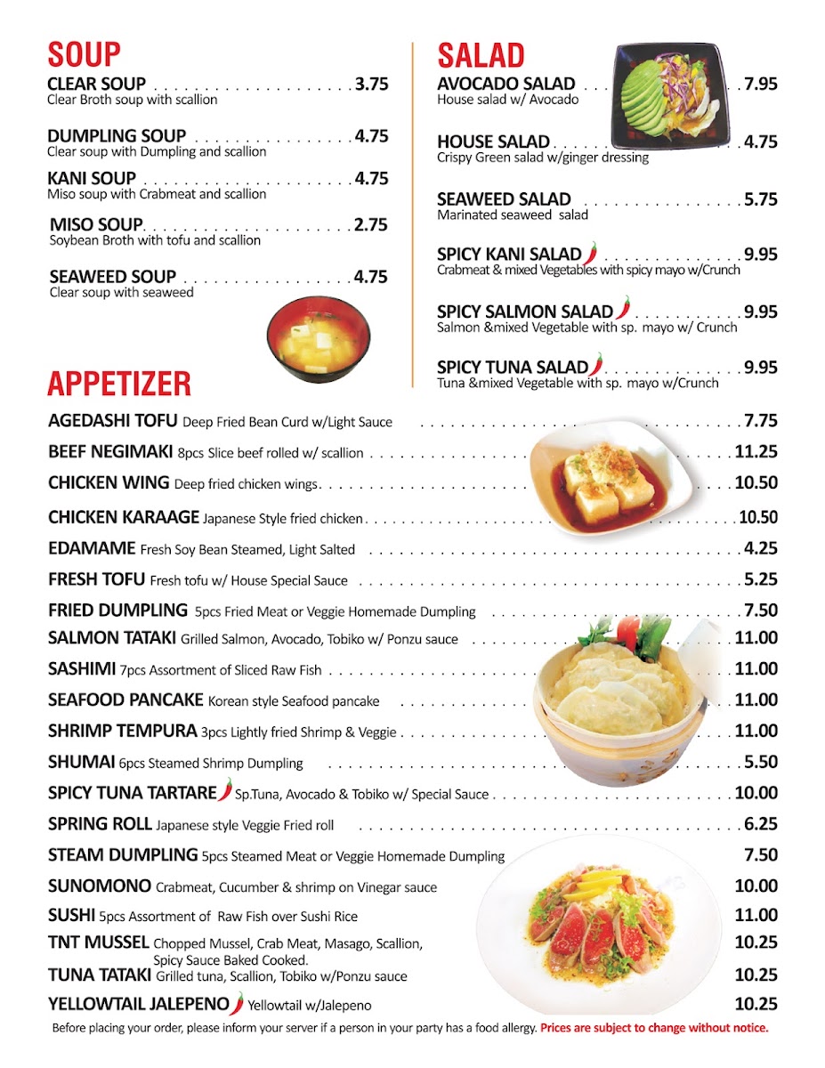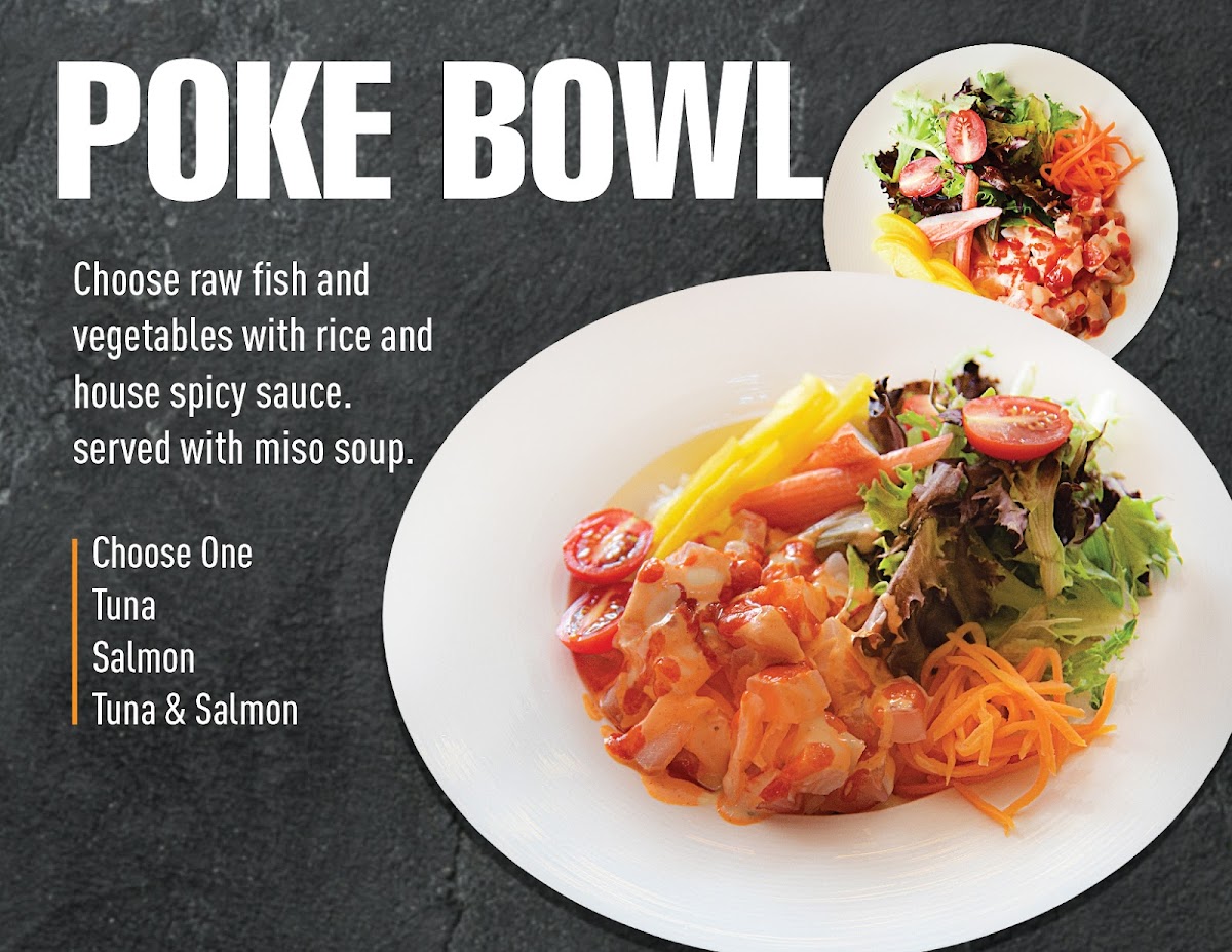Sliced fresh tuna on bowl of sushi rice. Serviced with soup and salad. * if you want pickup price is difference.